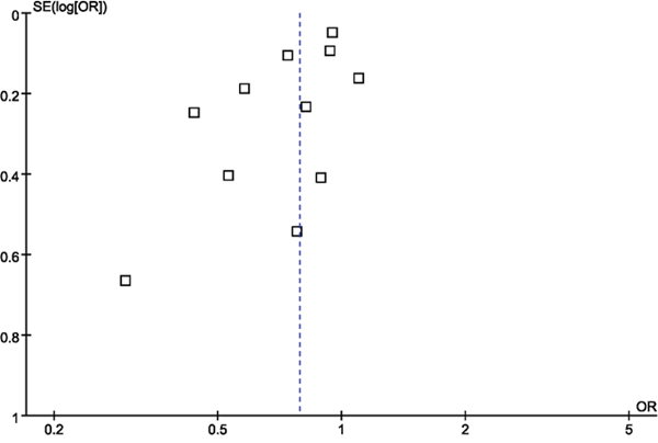 Figure 4: Funnel plot of the association between DM and risk of gliomas.