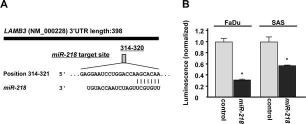 Partial sequences of the LAMB3 3’ untranslated region that contains miR-218 target site