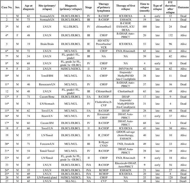 Table 1: Clinical details in 27 cases of relapsed B-cell lymphoma analyzed by BIOMED-2 PCR