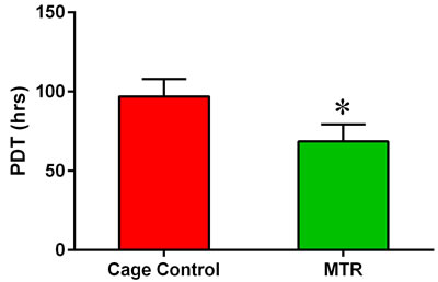 Data were analyzed by two tailed Student’s t-test. A difference between the MTR group and control group was considered as statistically significant when P-value was less than 0.05.
