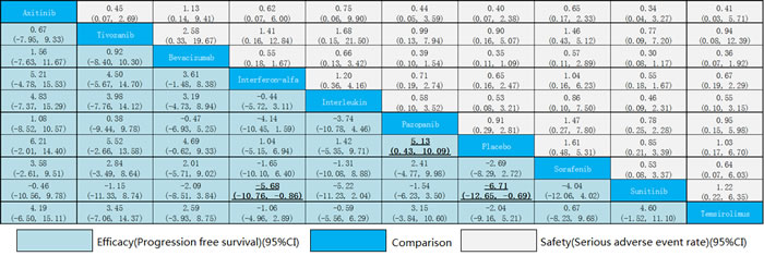 Figure 3: Efficacy and safety of drugs in metastatic renal cell carcinoma