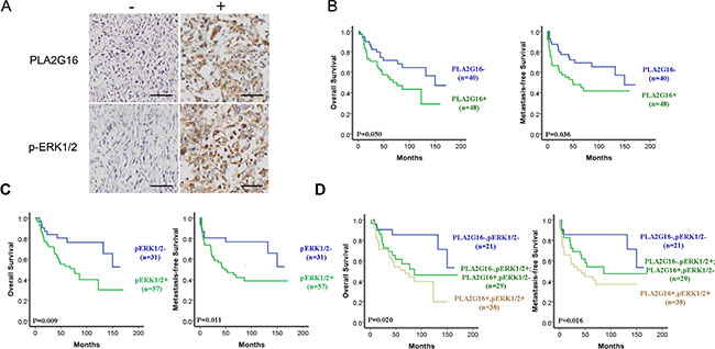 PLA2G16 expression is associated with ERK1/2 phosphorylation in osteosarcoma patients and predicts for poor overall and metastasis-free survival