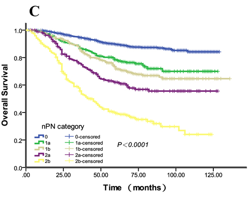 All patients were classified depending on TNM7, and then we counted TDs as pLNs in a new pN category. In this study, the pN category which combined with the number of TDs was recorded as npN category [5].