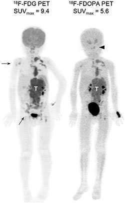 More recently, 18F-fluoro-dihydroxyphenylalanine (FDOPA) PET has shown high accuracy compared with CT/MR imaging [17] and good sensitivity compared with 123I-MIBG scintigraphy [18, 19]. By targeting the ubiquitous expression of aromatic