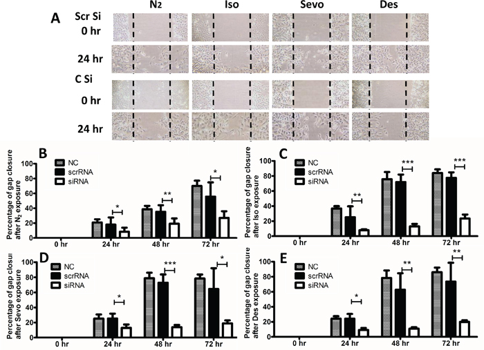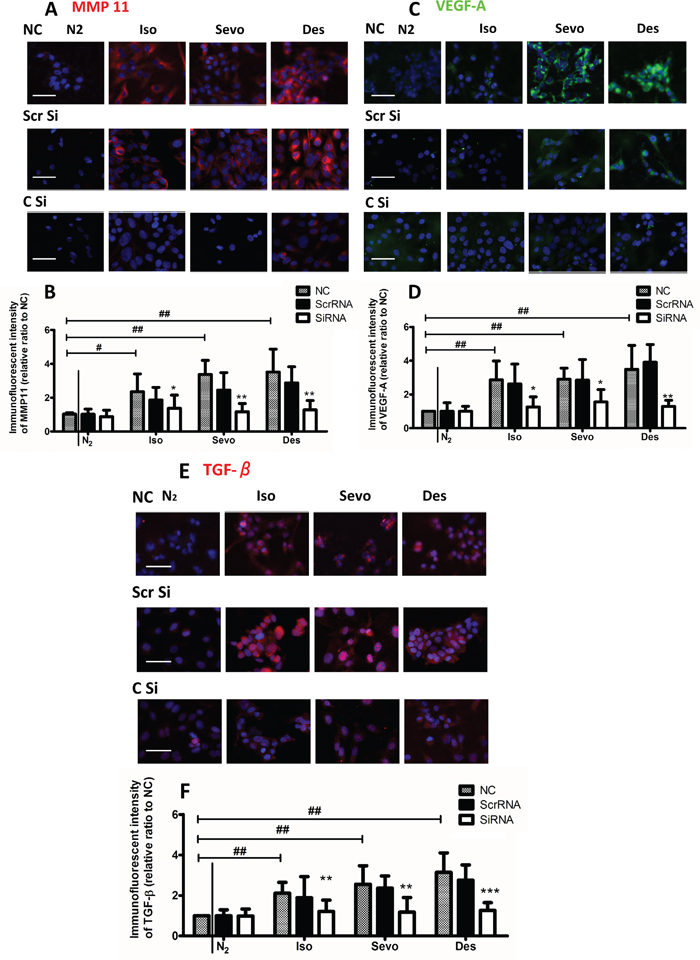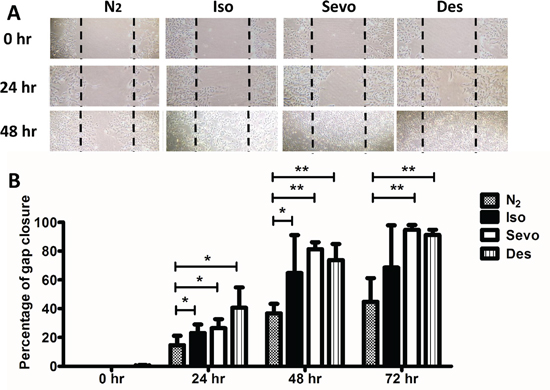 Table 1: Change of the expression of the metastatic genes in all the volatile anesthetics treated group (Iso = Isoflurane, Sevo = Sevoflurane, Des = Desflurane) compared with the control group