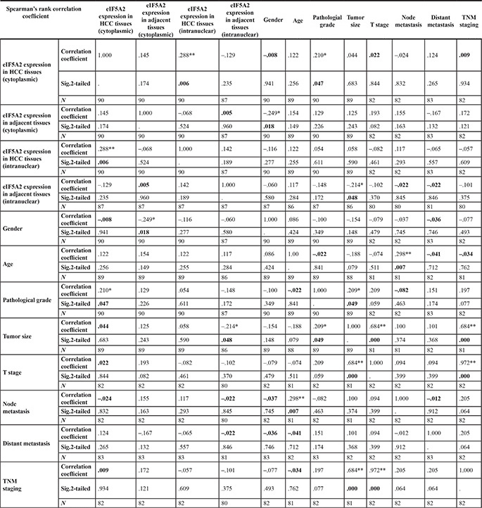 Table 2: Correlation analysis of clinicopathological characteristics and eIF5A2 expression