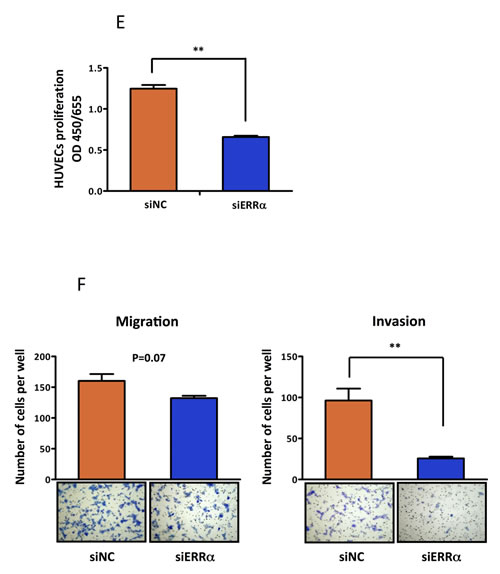 Effect of overexpression and knockdown of ERRα on angiogenesis in endometrial cancer cells