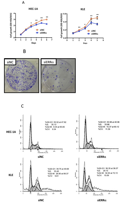 Effect of ERRα knockdown on cell growth and its association with phases of the cell cycle and apoptosis in endometrial cancer cells