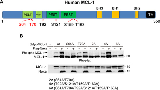 Ser64 and Thr70 on MCL-1 are phosphorylated when Noxa levels are increased