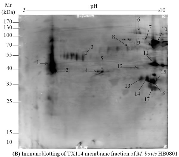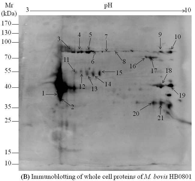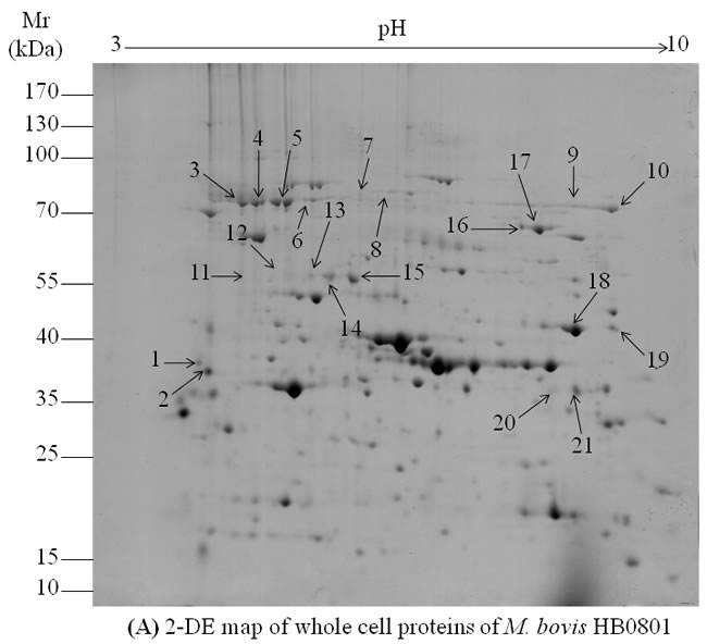 Table 1: Antigenic proteins identified in M. bovis HB0801 whole cell proteins
