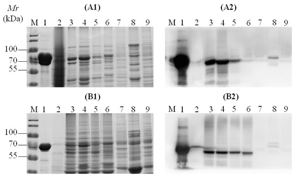 Considerable efforts have been made to elucidate antigenic structures in M. bovis, and some relevant proteins have been identified. They include exposed surface proteins, such as variable surface proteins (Vsp), the lipoproteins P26, P48-like, and mycoplasma immunogenic lipase A (MilA), and the immunodominant membrane protein pMB67 [12, 13, 14, 15, 16, 17], as well as cytoplasmic proteins, such as heat-shock protein 60 (Hsp60), glyceraldehyde-3-phosphate dehydrogenase (GAPDH), and the pyruvate dehydrogenase beta (PDHB) subunit, among others [18, 19, 20]. The highly-conserved M. bovis GAPDH was suggested as a potential antigen for diagnosis or vaccines; however, a subunit vaccine based on GAPDH did not protect against M. bovis [21]. The cause of this poor protective efficacy is unknown, but the host Th2 response, perhaps accompanied by high levels of the weak opsonin IgG1, has been suggested [22]. In general, early diagnosis would assist in the control of M. bovis infection in feedlots and dairy herds. Serodiagnostic assays, which might detect the IgG specific to M. bovis even in chronically infected cattle or animals exposed to antimicrobial agents, may be particularly helpful in this regard [20]. Although many serodiagnostic assays have been developed [5, 17, 20], improved serodiagnostic assays based on more sensitive and specific antigens are still required for the early detection of the M. bovis-specific IgG in exposed cattle populations.