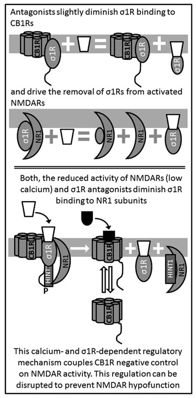 Figure 4: Antagonists of σ1R release NMDAR from the negative control of CB1Rs.