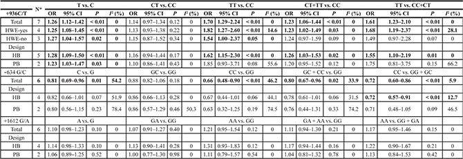 Table 2: Summary ORs and 95% CI of VEGF polymorphisms and osteosarcoma risk