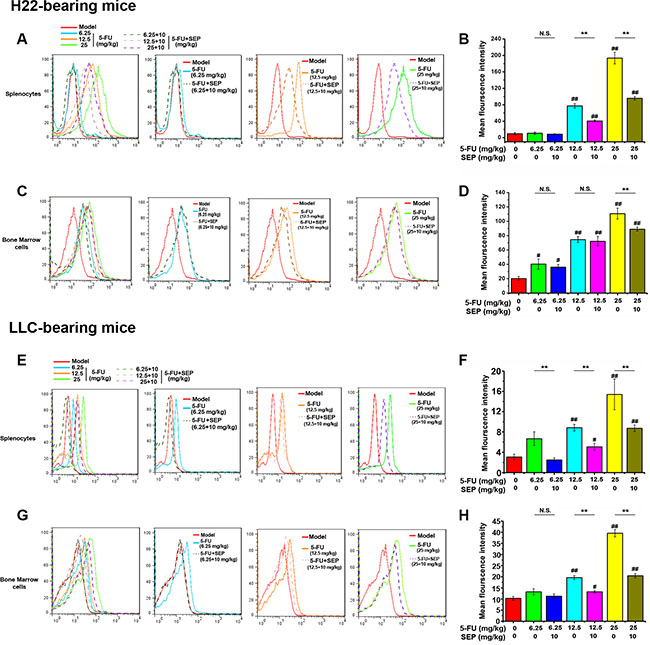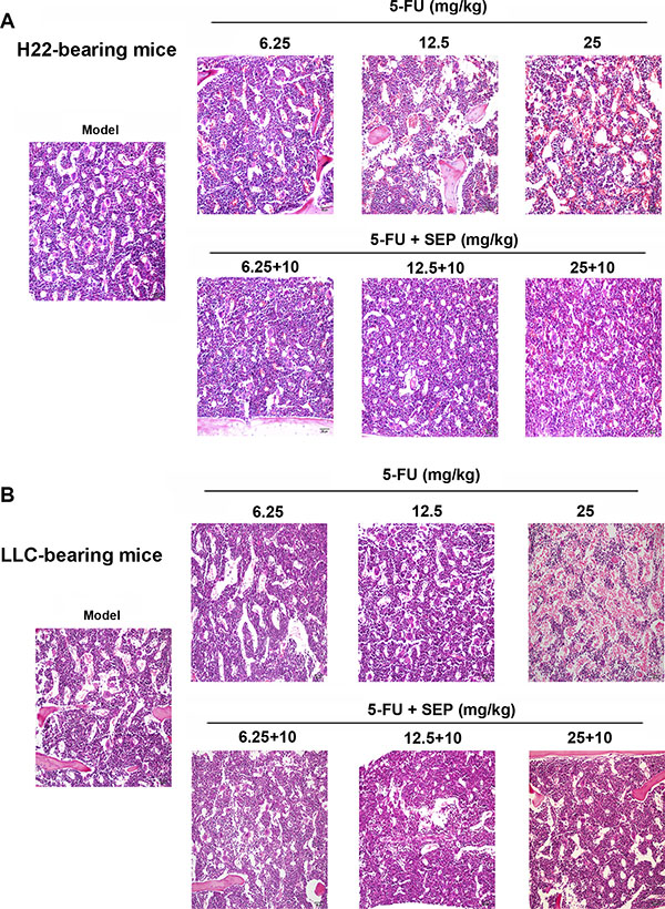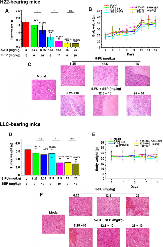 SEP enhances the antitumor activity of 5-FU in H22- or LLC-bearing mice