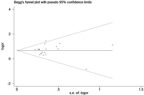 Figure 5: Begg’s tests for publication bias between LRRK2 R1628P polymorphism and PD risk (C vs. G)