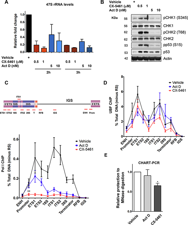 33. Negi SS, Brown P. rRNA synthesis inhibitor, CX-5461, activates ATM/ATR pathway in acute lymphoblastic leukemia, arrests cells in G2 phase and induces apoptosis. Oncotarget. 2015; 6:18094–18104. doi: 10.18632/oncotarget.4093.