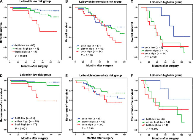 We retrospectively enrolled 268 patients with non-metastatic ccRCC who underwent surgical treatment at Zhongshan Hospital of Fudan University (Shanghai, China) from 2001 to 2004. None of the patients suffered from other types of renal cancer or had a history of previous anti-cancer therapy. After surgery, patients accepted physical examination, laboratory diagnosis, chest imaging, abdominal CT scans or ultrasound twice a year for the first two years and annually thereafter. Patients were followed up to 10 years after surgery. The followed-up period ranged from 12 to 120 months and the median period was 89 months. OS and RFS were measured from the date of surgery to the date of death and recurrence, respectively or to the date of last follow-up. For each patient, we gathered the following clinicopathologic information: age, gender, size of the tumor, TNM stage, Fuhrman grade, presence of tumor necrosis, microvascular invasion, and sarcomatoid feature. On the basis of radiographic reports and postoperative pathologic data, all of the patents were staged and then reassigned according to the 2010 American Joint Committee on Cancer TNM classification [26]. The UISS predictive models and the Leibovich prognostic score were used to categorize patients into 3 different risk groups. This study was approved by the research medical ethics committee of Zhongshan hospital and was carried out in strict accordance with the approved guidelines.