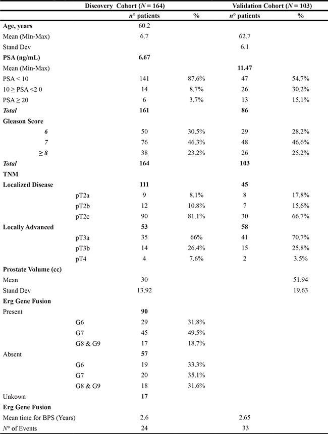 Table 2: Demographic and clinical characteristics of discovery and validation cohorts