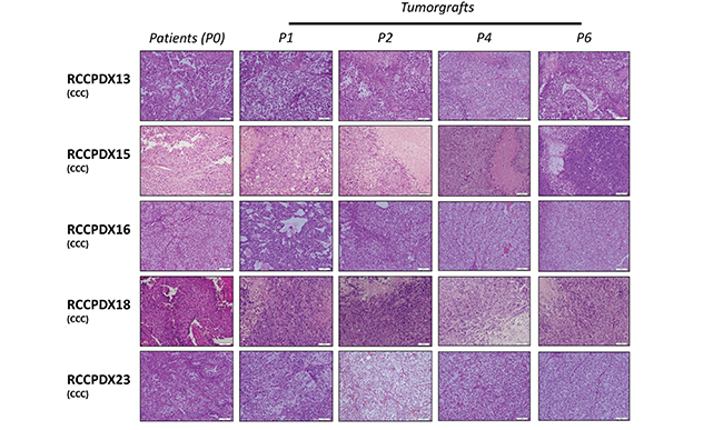In the current study, we describe the development of a large panel of well-characterized patient-derived RCC models based on subcutaneous implantation of freshly harvested tumors. Our results show that these models reproduce the sensitivity to targeted therapies observed in the clinic and that they very closely mimic human RCC, providing valuable opportunities to increase our knowledge of kidney tumorigenesis.