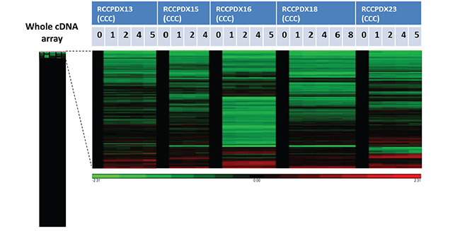 Thus, this panel of RCCPDX models should be valuable for studying the mechanisms of therapy-induced resistance, and for the design of prognostic tools based on molecular signatures of the tumors, which should help to better design therapy tailored to the patient. This is clearly of great value to identify predictive biomarkers of therapeutic response and of therapy-induced resistance. Moreover, these PDX models could be used for screening any new emerging treatment for RCC, as well as for repositioning existing drugs, allowing for a rapid and cost efficient screening of response biomarkers that will be the base of personalized medicine.