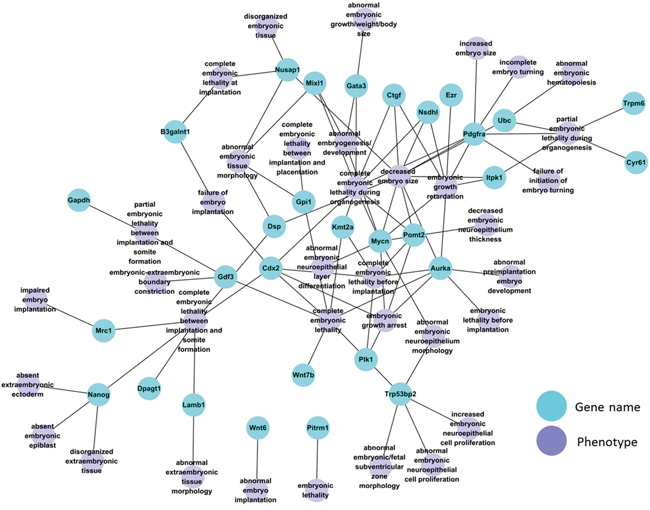 Figure 3: Network of 30 DDEGs with known embryonic phenotype in gene knockout mouse models.