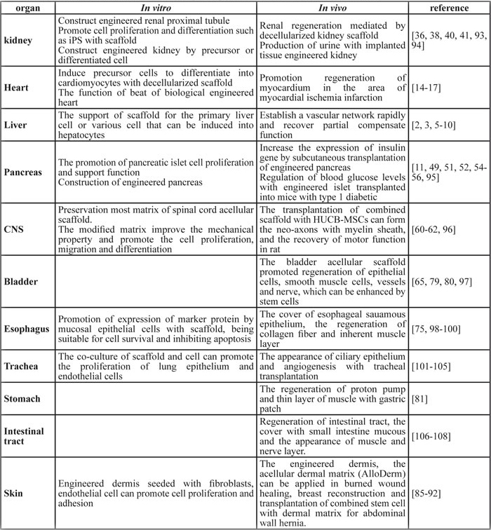 Table 1: Recent advances in scaffold based organ regeneration research in vivo and in vitro