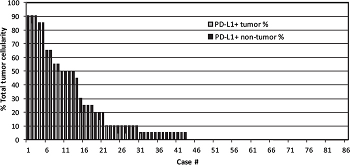 In the present study, we sought to investigate further the clinical and pathologic features of EBV-negative DLBCL cases with PD-L1 expression. Using a well-annotated cohort of patients with treatment information and long term clinical follow-up, we examined the immunohistochemical expression of PD-L1 in tumor cells and the microenvironment, and correlated these data with additional histologic parameters and clinical outcome data.