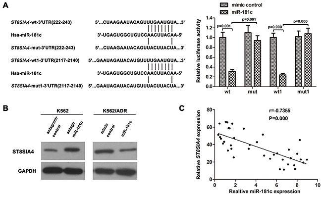 ST8SIA4 reverses the effect of miR-181c-mediated chemoresistance in K562 and K562/ADR cells