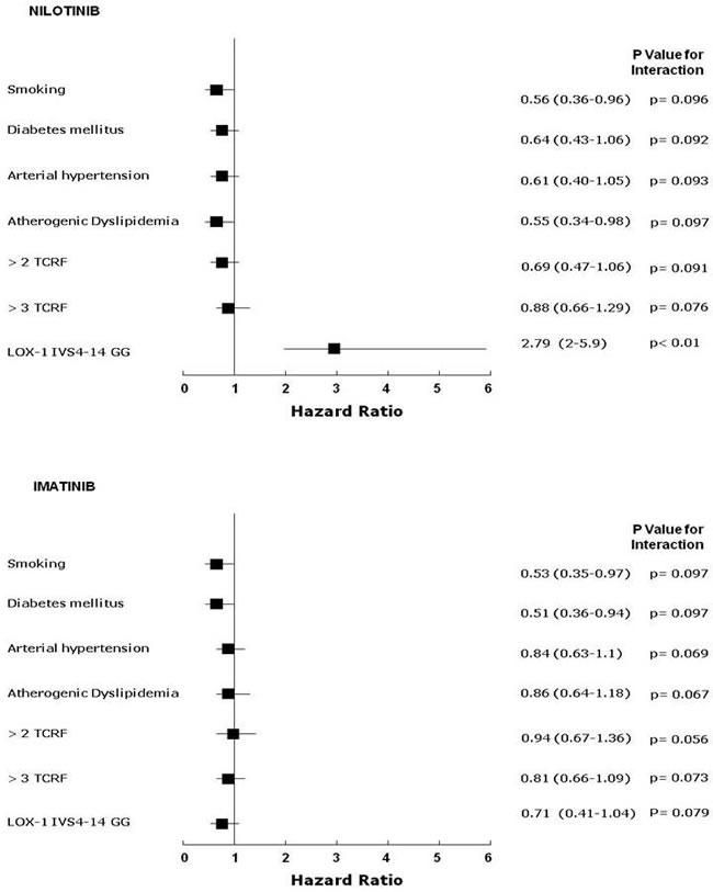The combination of genetic and biochemical data here reported may provide a possible clue to unravel the underlying mechanism of atherosclerotic vascular events occurring in some nilotinib treated patients. To further confirm our pathogenic hypothesis we started a large multicenter prospective study in CP CML patients treated with any of the first line approved TKI in which pro-atherothrombotic genetic status, traditional CV risk factors and biochemical profile, will be evaluated from baseline and monitored during treatment. The ultimate goal of this study is to provide a genetic and biochemical tool that will aid clinical evaluation in identifying patients with relevant atherothrombotic risk earlier and better, in order to offer them the most effective, yet safest, personalized TKI treatment.