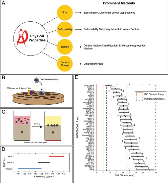 Physical properties: Can help distinguish CTCs from normal WBCs, these permit CTC isolation without biomarker labeling (Figure 2A).
