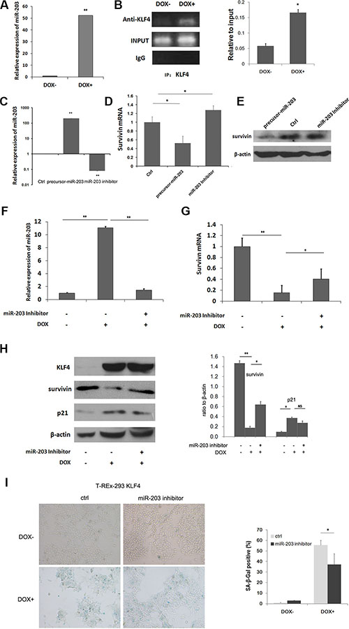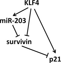 KLF4 induces senescence though miR-203-survivin-p21 pathway.