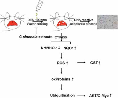 The purpose of the present study is to verify our hypothesis that C. sinensis could attenuate the oxidative stress induced by DEN and protect the liver from hepatoma. Moreover, characterization of the associated molecular mechanisms would improve the clinical utility of herbal intervention in liver cancer therapy.