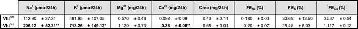 Table 3: Urinary excretion parameters of mice with renal epithelial cell-specific deletion of Vhl.