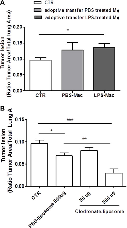 The depletion of tumor-associated macrophages reduced tumor formation in the lung