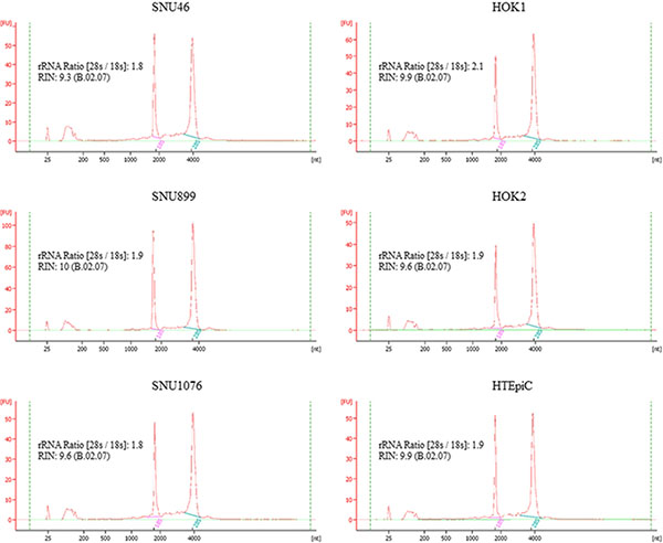 Table 1: Expression of deregulated microRNAs in LSCC cell lines and normal epithelial culture revealed by microarray profiling