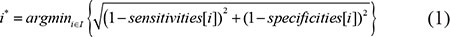 A coverage threshold set T with specified sensitivity and specificity was generated with the R package pROC based on the coverage values of good and bad reconstructed transcripts [42]. The index of the optimum coverage threshold in set T can be obtained by formula 1, in which i* represents the index of the optimum coverage threshold and sensitivities[i] and specificities[i] respectively denote the sensitivities and specificities of the ith coverage threshold. The value for i is enumerated in I, ranging from 1 to the size of the coverage threshold set T. Then the optimum coverage threshold can be obtained with formula 2 [43].