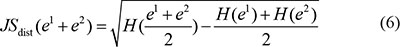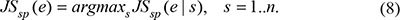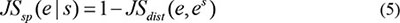 The temporal specificity score was defined by formula 5, in which JSdist dist was the Jensen-Shannon distance (JSD) between two stage expression patterns and e was the gene expression pattern across n stages (formula 6). And es was a predefined expression pattern that represented the extreme case in which a gene was expressed in only one stage. It was defined by formula (7).
