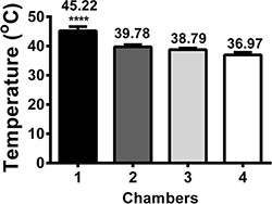 Figure 2: The formation of a stable temperature gradient from 37°C to 45°C. The stable temperature gradient was recorded from 37°C to 45°C when chamber 1 was heated to 45°C.