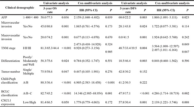 Correlation between CXCL1 expression and HCC recurrence after hepatectomy