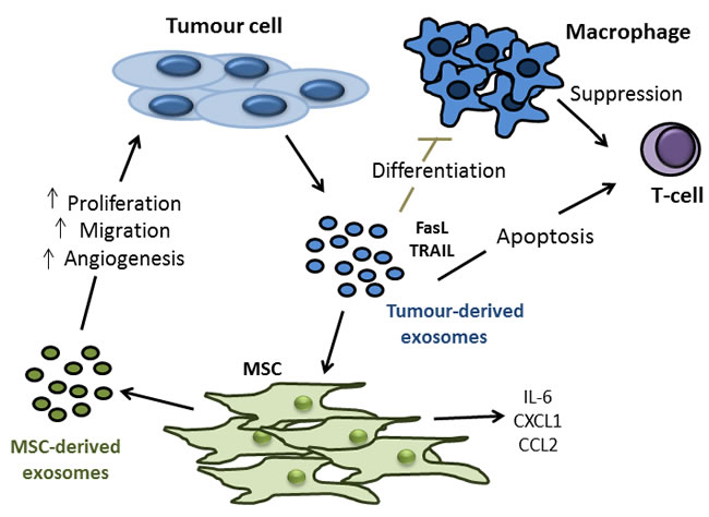 Tumour-conditioned MSCs co-cultured with tumour cell line increased tumour cell growth and proliferation |