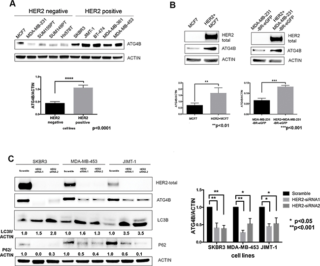 ATG4B protein expression correlates with HER2 status in breast cancer cell lines