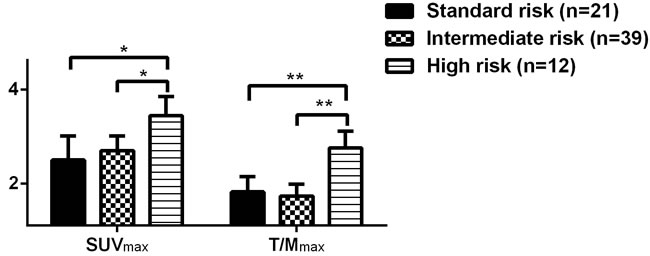 Figure 3: Comparison of 18F-FDG uptake in patients with newly-diagnosed MM at different molecular biological risks