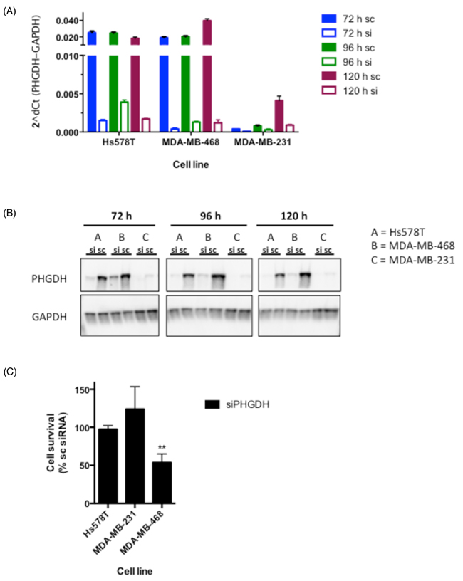 PHGDH-overexpressing MDA-MB-468 are susceptible to PHGDH knockdown