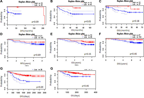 Furthermore, in colon tumors, low levels of this gene are associated with worse prognosis (Figure 8A–8C and Supplementary Table S2). In breast and lung tumors, the small percentage of tumors with low NumbL mRNA levels also showed worse prognosis (Figure 8D–8H and Supplementary Table S2). However, the overall statistics were not significant values, likely due to the very different number of cases in both arms; yet, a clear tendency can be observed.