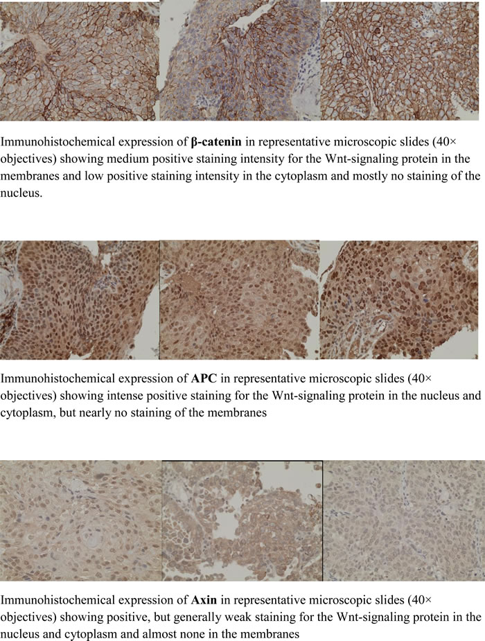Table 2: Immunohistochemical staining (IHC) of β-catenin, axin and APC in the membranes, cytoplasm and nucleus of cervical cancer cells.