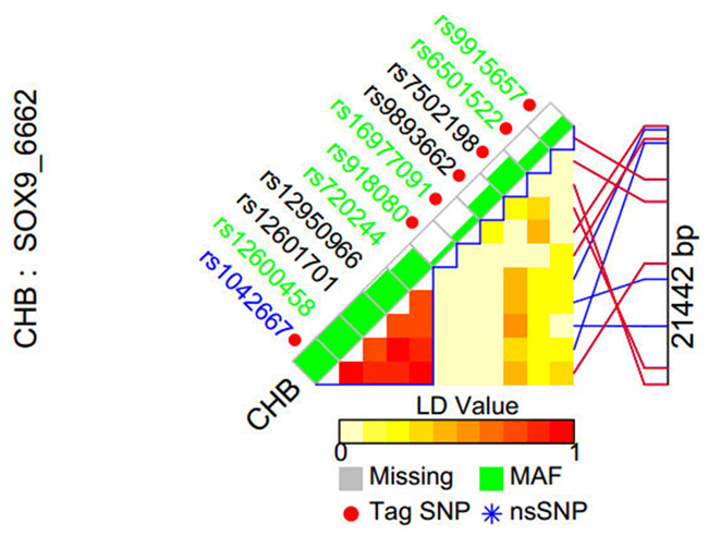 Figure 1: tag SNP selection of the SOX9 gene.