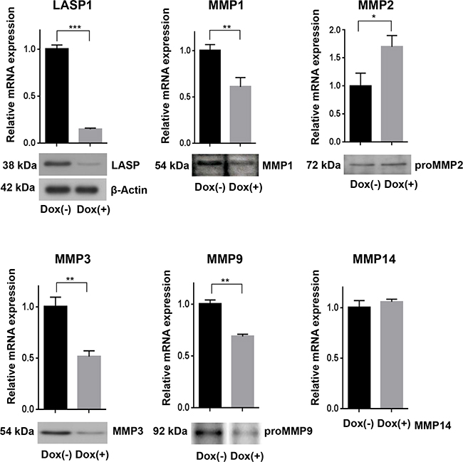 Rescue experiments confirm the role of LASP1 on MMP expression and secretion
