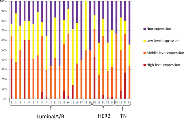 Table 4: Different levels of CTCs HR expression status based on different hormone receptor statuses of the primary tumors