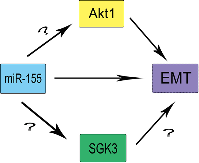 Figure 1: The theoretical roles and regulation of SGK3, miR-155, and Akt1 in EMT.