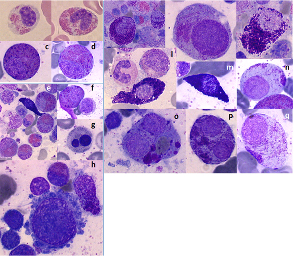 Cytological description of abnormal MCs in situ in the initial sarcoma lesion is uncommon given the localized nature of the lesion and the sites of pathological MC proliferation. However, because of the intrinsic propensity of MCS to spread from the initial limited localization to other tissues and in particular to bone marrow, cytological assessment of these cells is feasible in such tissues. A representative case of MCS with extended infiltration to the bone marrow is illustrated in Figure 3.